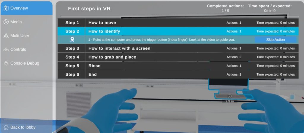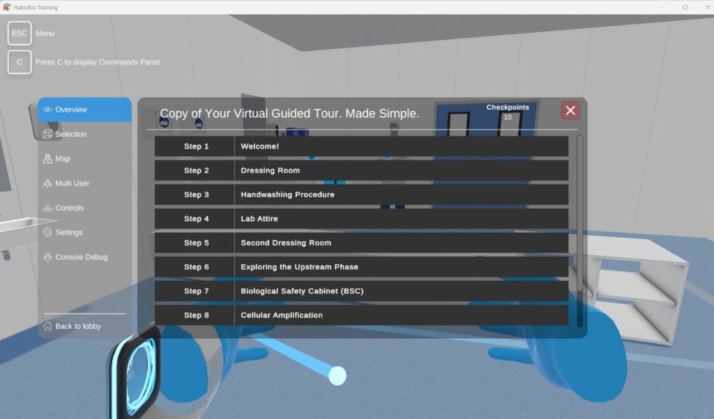 In the guided tour, you can either follow the different steps or explore freely.